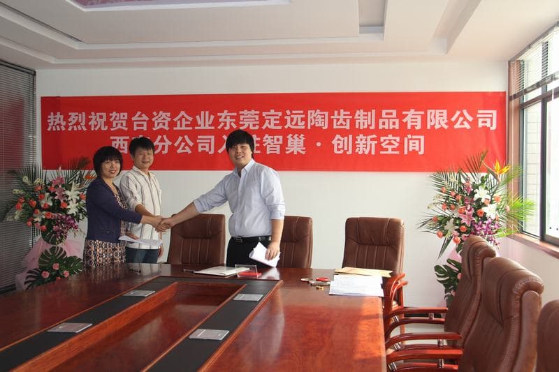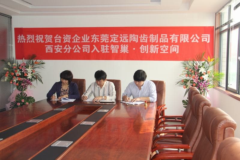 東莞定遠陶齒與西安智巢.創新空間工業區代表正式簽署廠房買賣合約,代表東莞定遠生產線將很快延伸到西北市場為客戶提供服務.