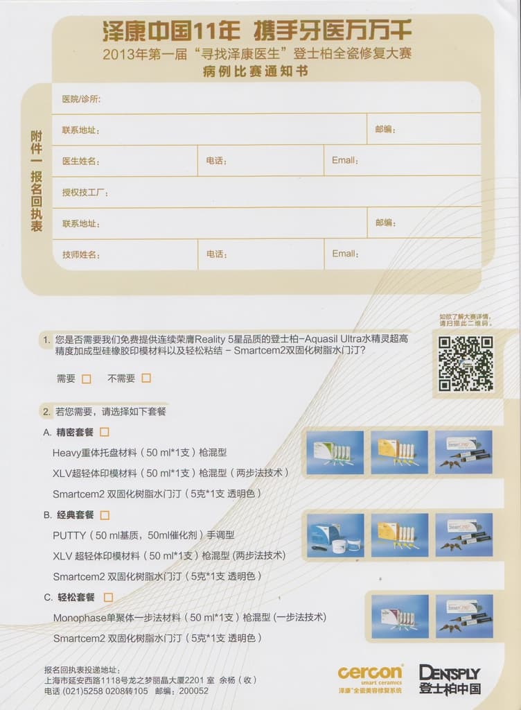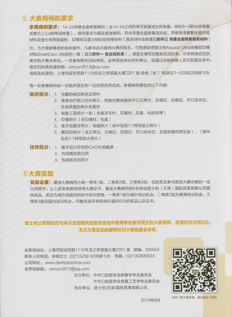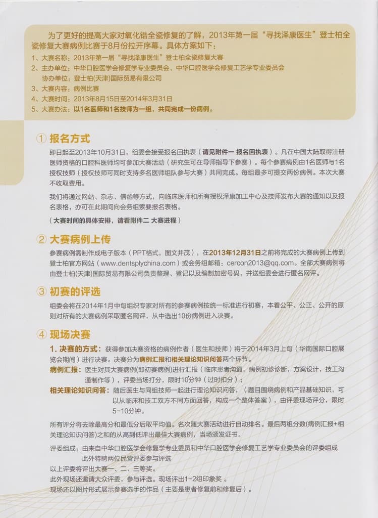 2013年“寻找泽康医生”登士柏全瓷修复大赛-病例比赛通知书