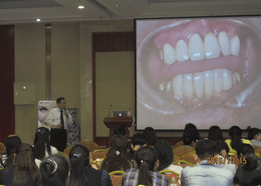 俗话说早起的鸟儿有虫吃,早上七点十五分开始陆续有学员到场办理报到手续,整场活动准时八点钟开始◦首先由大连大学附属中山医院口腔科王主任对于此次会议的致词及依序介绍主讲老师背景和资历并且宣布口腔医学继续教育课程开始◦课程先由东莞定远陶齿制品有限公司中国市场部赖剑聪经理对于”生物高分子材料在牙科修复上的应用”做专题介绍◦赖经理特别对于目前市场上最新应用于种植上部修复的高分子材料做详细介绍◦
